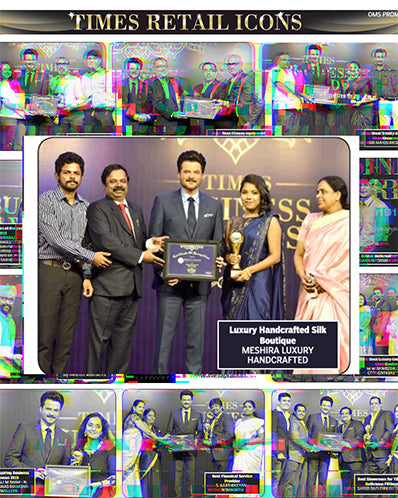 In 2019, we were humbled to receive the Times Retail Icon Award for the Best Silk Saree Store in Chennai, a recognition of our dedication to quality and tradition. Over time, Meshira-Luxury Handcrafted has grown into a family, with loyal customers who have become cherished friends.