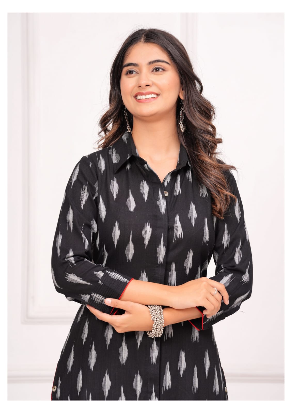 Shock for this pure ikkat coord set in black-and-white traditional combination.