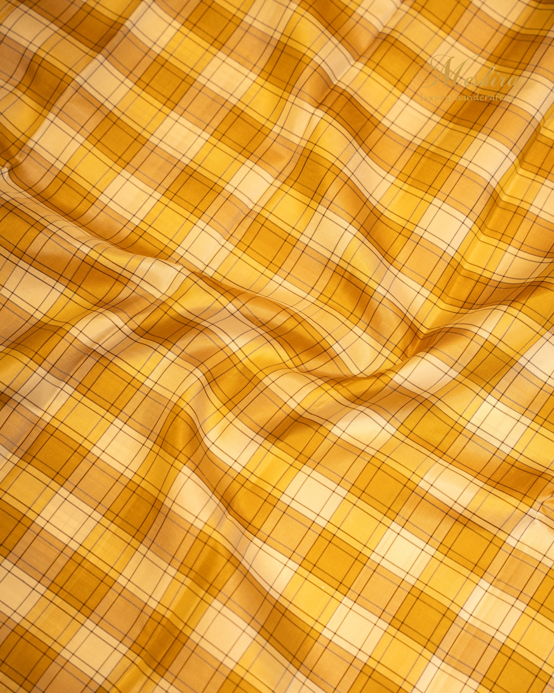 Kanchivaram Silk Saree in Mustard Checks & Coffee Brown